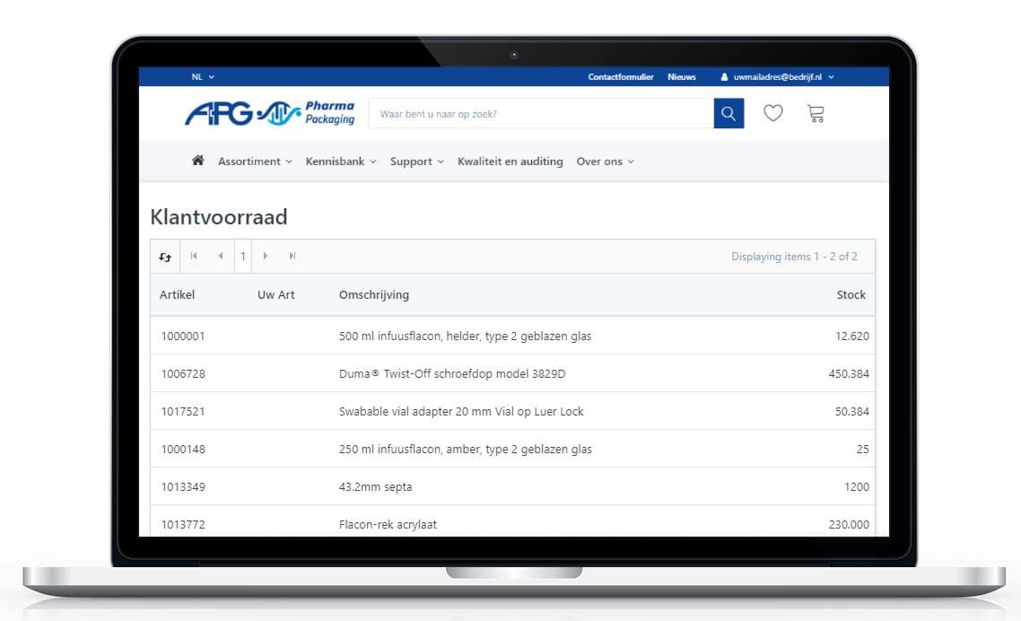 Eén overzicht van specifieke artikelen met uw klantspecifieke prijzen en bijbehorende informatie, zoals: